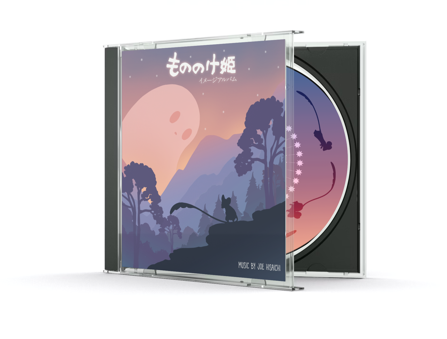 Diseño de portada, contra portada y disco del soundtrack de “La Princesa Mononoke” por Joe Hisachi